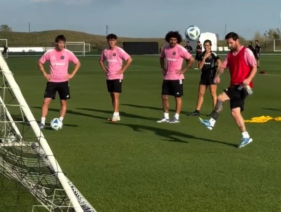梅西随后出场,随后起脚将球从球门正后方打入,球带有明显旋转。