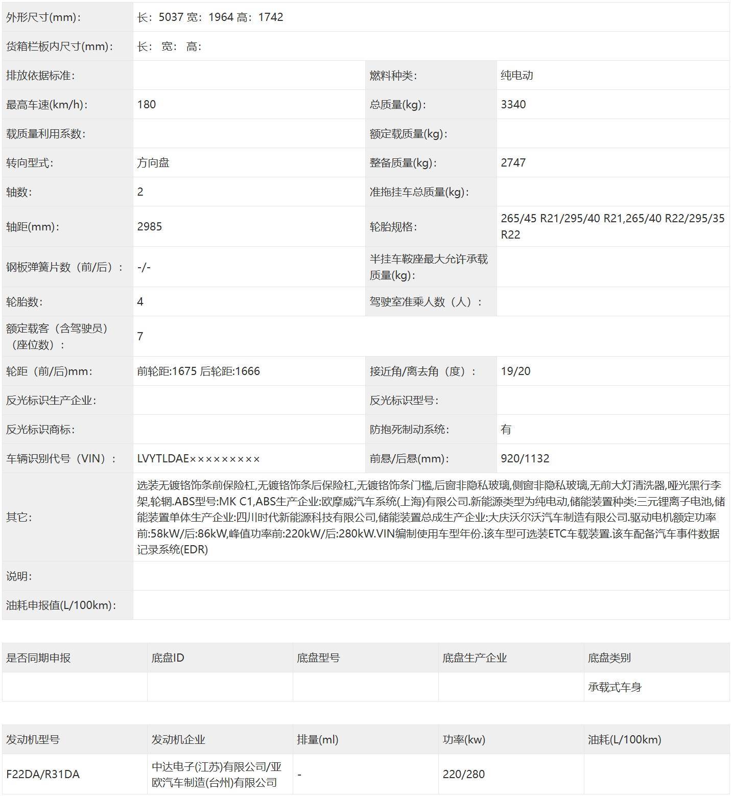 EX90共申请了8款车型,不出意外会提供4款配置,同配置下又提供6座和7座可选,充分满足不同人群的需求。